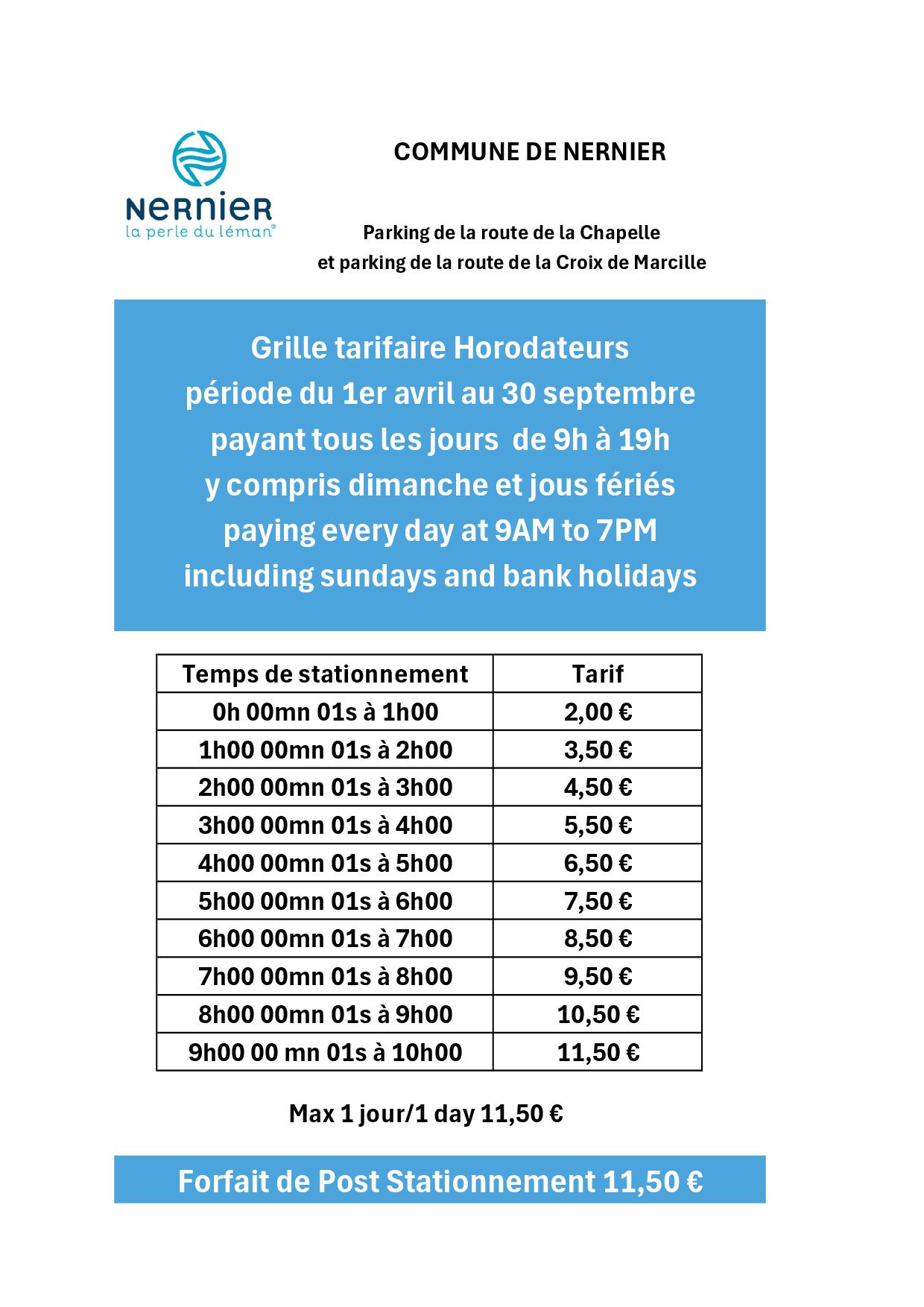 - Parking Route de la Chapelle (stationnement payant par horodateur d'avril à septembre de 9h00 à 19h00)